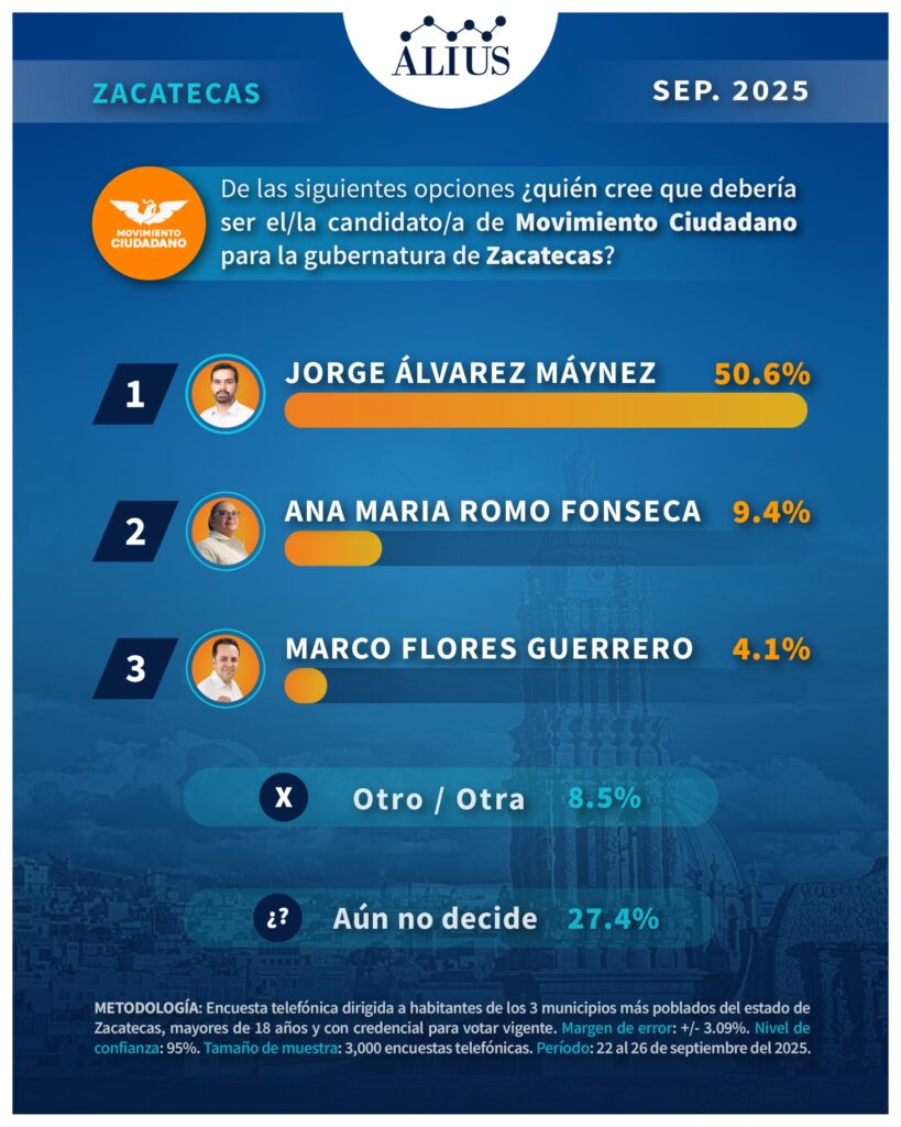El panorama en Zacatecas refleja una competencia abierta, con Morena al frente, pero con un bloque opositor activo y figuras fuertes como Máynez, Bonilla y Varela que podrían alterar la contienda conforme se acerque 2027.